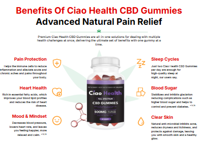 The primary advantage that Ciao Health CBD offers is the streamlining of your daily life. For further insights, please review this blog in its entirety. These gummies have recently been introduced to the market and have rapidly gained significant popularity. They are formulated to assist in multiple ways, providing a holistic solution to various pain-related health issues. They deliver immediate pain relief and help prevent the reoccurrence of chronic pain in the future due to their anti-inflammatory characteristics. Common pain issues, such as discomfort in the back and neck, will be addressed promptly. Please scrutinize the formulation of Ciao Health CBD before proceeding with a purchase. A life free from pain is the inherent condition of human existence. You enter the world with a robust physique. Thus, why has this intrinsic wellness diminished, making pain an unavoidable element of life? The cause is your current lifestyle, which is both unsuitable and unhealthy.