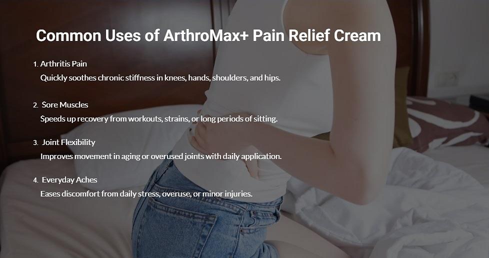 ArthroMax operates by delivering active pain-relieving compounds straight to the afflicted tissues. Upon application, the cream infiltrates the skin layers and starts to alleviate irritated nerves and inflamed joints. Its warming or cooling sensation helps release tight muscles, enhance blood circulation, and reduce stiffness. By calming pain signals and mitigating inflammation at the source, ArthroMax Plus CANADA fosters quicker relief without placing strain on the digestive system.