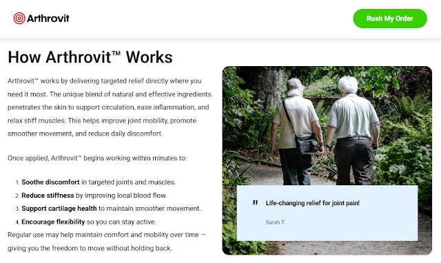 Arthrovit Arthritis Pain Relief Cream assistance in alleviating burdens is recognized as an effective pain reliever that substantially improves your quality of life. It represents the ideal solution for addressing muscle spasms, lower back discomfort, and joint pain. Therefore, if you encounter individuals promoting Arthrovit Official Website, it is likely not a legitimate improvement, and you may wish to refrain from purchasing it.