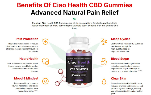 Ciao Health CBD serves as a pain-relieving remedy that identifies the underlying cause of chronic pain and its associated symptoms. The ECS is a physiological system that governs both physical and mental processes. The endocannabinoid system also plays a vital role in the regulation of neurological and pain responses. Cannabinoid oil has been demonstrated in clinical trials to manage the Ciao Health CBD Gummies, address disorders such as stress, depression, joint pain, and enhance general well-being. These Ciao Health CBD contain validated substances that are swiftly absorbed body the blood vessels to elicit positive inflammatory and stress responses. It employs a sublingual delivery method that enters the bloodstream immediately, promoting tranquility and relaxation. Consuming one gummy daily helps saturate the body with cannabinoids, resulting in a balanced endocannabinoid system that lessens pain, enhances restorative sleep, and fosters overall health.
