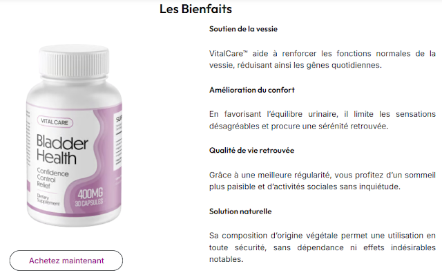 ➽➽ VitalCare™ Bladder Health 400mg "Site Officiel" => (Jusqu'à 60% de réduction instantanée) Offres exclusives en France, Belgique, Luxembourg, Suisse!
