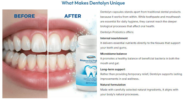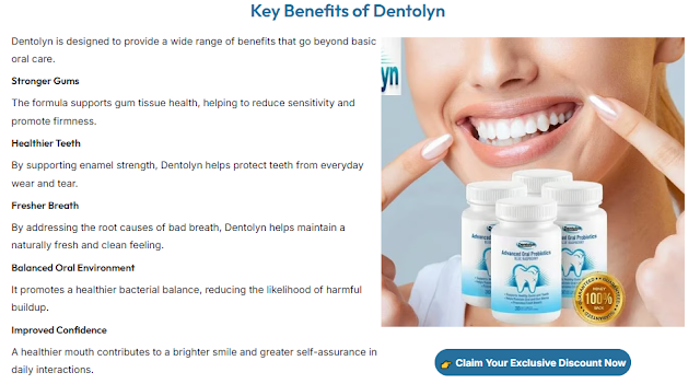 Dentolyn is a sophisticated oral health supplement designed to enhance dental well-being organically. These capsules are manufactured utilizing a combination of meticulously selected components that collaborate to enhance gum resilience, safeguard teeth, and sustain a harmonious oral ecosystem. In contrast to conventional dental items that solely operate on the exterior, Dentolyn seeks to improve oral cleanliness from within, rendering them an essential enhancement to your everyday health regimen.