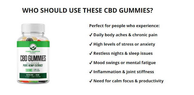 Forest Mountain Farms CBD Gummies contain nutrients that are assimilated into the circulatory and digestive systems, thereby enhancing their efficacy. This formulation will significantly contribute to your well-being, and you need not be apprehensive about your safety in the process. Forest Mountain Farms CBD Gummies represent a nourishing approach to assist your body in its self-healing. They can alleviate pain and promote overall health. By stimulating the body's inherent calming mechanisms, this blend can lead to a reduction in inflammation. This diminishes the body's inflammatory response while simultaneously relieving pain and other acute issues. We are often deceived into purchasing counterfeit or inferior products, which is unfortunate. Forest Mountain Farms CBD Gummies are a type of infused product developed by experts following extensive research and laboratory testing to help individuals care more effectively for their health and well-being.