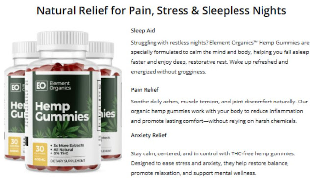 Element Organics represent a convenient, effective, and enjoyable method to harness the therapeutic advantages of CBD. With their full-spectrum formulation and premium-quality ingredients, these gummies present a natural remedy for pain alleviation, anxiety reduction, improved sleep, and overall well-being. Whether confronting chronic discomfort, stress, or sleep disturbances, Element Organics offers a safe and dependable solution for enhancing health without the negative effects associated with conventional medications. Coupled with favorable customer testimonials, competitive pricing, and satisfaction assurances, Element Organics Hemp Gummies are an essential consideration for anyone pursuing natural, holistic health alternatives.
