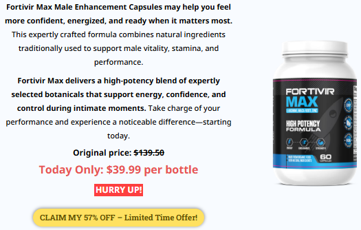 Fortivir Max Male Enhancement ➢ ➢ Get Exclusive Offers on Official Website - Upto 57% off in USA, UK, Ireland, Australia, Canada & New Zealand