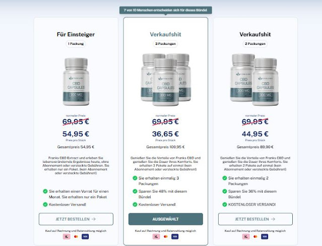 Frank & Frey CBD-Kapseln [DE,AT,CH] können direkt über die Website des Unternehmens erworben werden. Durch den Kauf über die offizielle Plattform erhalten Sie garantiert ein authentisches, zuverlässiges Produkt, das direkt zu Ihnen nach Hause geliefert wird. Nach der Bestellung erhalten Sie Ihr Paket innerhalb von 2-4 Werktagen. Die wohltuenden und ganzheitlichen Eigenschaften der CBD-Kapseln von Frank Frey Deutschland entsprechen dem wachsenden Trend, dass Menschen pflanzliche Heilmittel für ihre Gesundheit und ihr Wohlbefinden suchen.