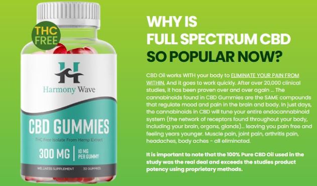 HarmonyWave CBD Gummies are infused with CBD sourced from the hemp plant. They provide a rapid and enjoyable manner to access the potential health benefits of CBD, such as improved overall wellness, enhanced sleep, and diminished stress levels. Each gummy delivers a consistent quantity of CBD, enabling users to seamlessly integrate them into their daily regimen without the necessity for measuring or preparation.