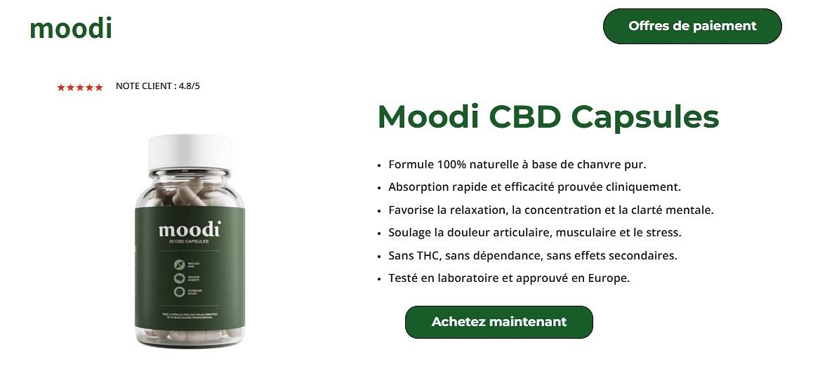 moodi™ CBD Capsules pour l'équilibre métabolique ➢ ➢ Bénéficiez d'offres exclusives sur le site officiel - Jusqu'à 50 % de réduction en France
