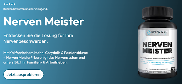 Nervenbeschwerden, Kribbeln, Taubheitsgefühle oder starke Schmerzen können Ihre Lebensqualität erheblich beeinträchtigen und alltägliche Aufgaben erschweren. Nerven Meister ist ein natürliches Nahrungsergänzungsmittel, das die Nervengesundheit verbessert, Beschwerden lindert und das allgemeine Wohlbefinden fördert. Mit klinisch validierten Inhaltsstoffen bietet Nerven Meister Kapseln Deutschland einen umfassenden Ansatz zur Behandlung von Nervenschmerzen an der Quelle. Nachfolgend finden Sie eine ausführliche Übersicht über Funktionsweise, Inhaltsstoffe, Vorteile, Anwendung und Kaufalternativen.