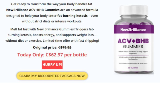 New Brilliance Keto is a powerful and natural remedy for those aiming to achieve weight loss in a healthy and sustainable manner. With its scientifically designed formulation and natural components, New Brilliance Keto aligns with the body's innate systems to promote fat metabolism, alleviate stress, and improve digestion. If you are seeking a safe and natural approach to weight reduction, New Brilliance ACV BHB Gummies CANADA presents an excellent choice.