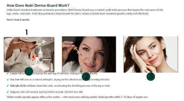 Nutri Derma Guard is specifically designed to target skin Nutri Derma Guard directly, causing them to shrink and eventually dry NutriDermaGuard Serum. The primary mechanism behind its effectiveness is its active ingredient, which generally consists of a blend of natural acids and botanical extracts. These components work to break down the tissues that constitute the skin, gradually leading to their detachment. This occurs because the serum precisely targets age spots without damaging the surrounding skin. Given the potent natural compounds it contains, skin Nutri Derma Guard ultimately fall off. Moreover, Nutri Derma Guard Skin Tag Remover contains no additives that would impart a synthetic odor or texture, making it remarkably easy to use.