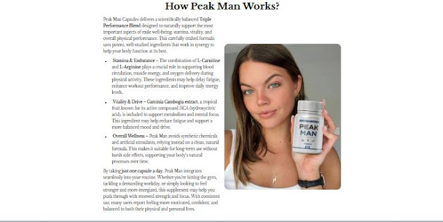 Peak Man supplements are formulated to enhance various aspects of male sexual health, including libido, endurance, and performance. These enhancements typically comprise a blend of natural ingredients recognized for their aphrodisiac and performance-boosting properties. Peak Man is designed with a combination of natural components believed to improve different facets of male sexual function, encompassing desire, stamina, and erectile capacity. Peak Man UK "Official Website" is a groundbreaking supplement aimed at bolstering male vitality and performance. It is crafted with a mix of natural ingredients acclaimed for their ability to enhance sexual health and overall well-being.