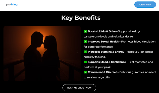 ProLiving Gummies function through their potent array of ingredients that target various aspects of male sexual health. These elements may assist in boosting blood circulation to the penis, facilitating testosterone production, and enhancing overall sexual performance. ProLiving Gummies address the underlying causes of sexual dysfunction in men. They promote increased blood flow to the penis, resulting in firmer and more enduring erections. Furthermore, they elevate testosterone levels, which are essential for maintaining libido and sexual vitality. ProLiving Gummies is a dietary supplement designed to improve male sexual health and performance. With its blend of natural components and potential benefits, it is no surprise that it has gained popularity among men seeking to enhance their sexual experiences. However, it is crucial to proceed with caution and consult a healthcare professional before starting any new supplement regimen, especially if you have pre-existing health conditions or are taking medication.