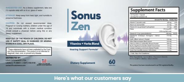 Sonus Zen Tinnitus Relief is a natural wellness supplement created to tackle the underlying factors and manifestations of tinnitus. Tinnitus is not an ailment in itself but rather a condition frequently associated with complications in the auditory system, nerve pathways, or even stress and inflammation.