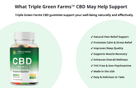 Triple Green Farms CBD Gummies are advertised as a product infused with CBD (cannabidiol), a non-intoxicating substance extracted from the cannabis plant. While numerous benefits generally associated with CBD products may be available, it is essential to recognize that personal experiences can differ, and scientific research remains ongoing to explore the complete range of impacts and their efficacy. Below are numerous possible advantages of employing Triple Green Farms: